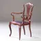 ~ Meerdere exemplaren beschikbaar (4X) ~ Elegante armstoel, Engeland Hepplewhite stijl in noten met lila rundleer, een opengewerkte rugleuning en zeer fraaie armleuning.