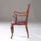 Elke moderne meubelmaker is zwaar onder de indruk van het meubelmakerswerk dat aan deze stoelen ten grondslag licht. De fragile rugleuningen met daaraan de twee uitermate elegante armleuningen die elk een hout-technisch bijna onmogelijke bocht maken en zijn ingestoken in het frame van de zitting dat zonder klassiek zitraam is gemaakt waardoor de stoel aanzienlijk minder zwaar oogt dan z’n tijdgenoten.