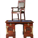 De armstoel heeft geen beslag maar de gestoken kapregel komt overeen met de deurpaneeltjes in het bureau.