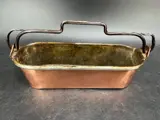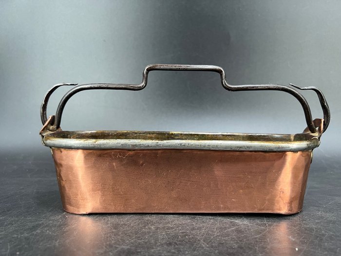 Antieke Franse visketel, gemaakt van koper, deze ambachtelijke pan is gehamerd en de randen zijn gerold, deze ketel is handgemaakt, het originele interieur is ingeblikt met tin, eindelijk heeft het dit traditionele vouwhandvat gemaakt van smeedijzer. Deze 19e-eeuwse Franse visketel is een keukengerei dat zijn plaats vindt in een rustieke inrichting. met een warme patina-- een mooie blikvanger in een oude keuken of restaurant