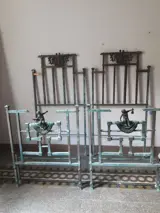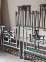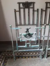 Te restaureren. Hoofdeinde en voeteneind van messing met engeltjes.