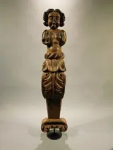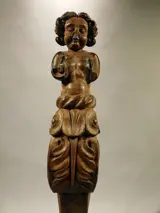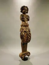 Prachtige houten sculptuur - kariatide met de voorstellingvan een putto boven florale versiering.