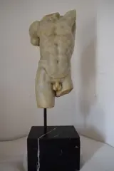 Mannelijke torso in Carrara-marmer met voet in zwart marquinia-marmer, in uitstekende staat, intact, alleen kleine scheurtjes en slijtage na verloop van tijd.