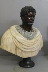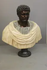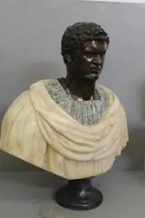 Buste van Romeinse keizer, Caracalla met hoofd in brons en kostbaar marmer, 20e eeuw, privécollectie