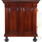 In de plint een vrijwel onzichtbare verdekte lade. Achter de twee deuren 4 zogenaamde zilverladen onder de laden. Bovenin een smal zogenaamd hoedenplankje.