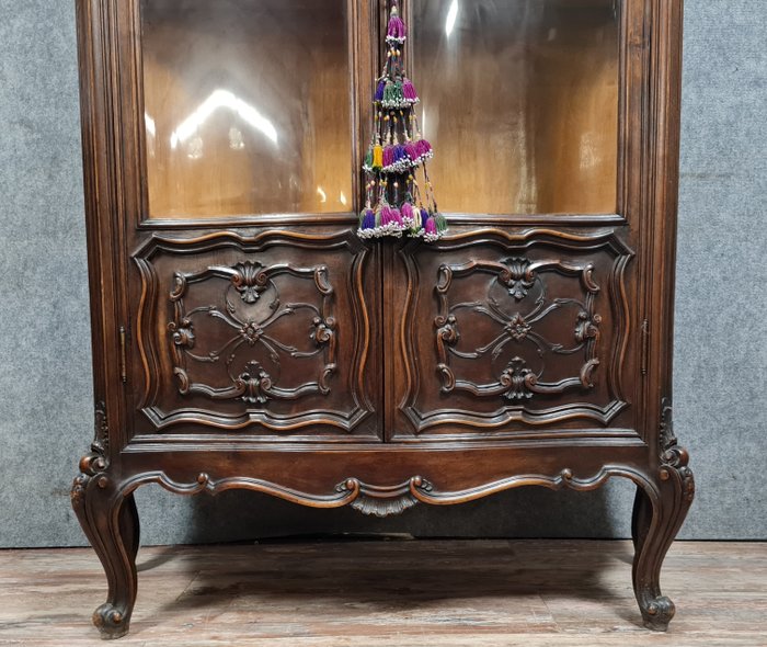 Lodewijk XV-stijl boekenkast volledig gebogen in massief notenhout rond 1900