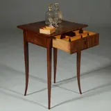 Bijna vierkante Biedermeier bijzettafel mooi ingelegd met lade met vakverdeling ca 1830