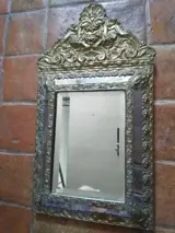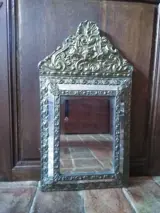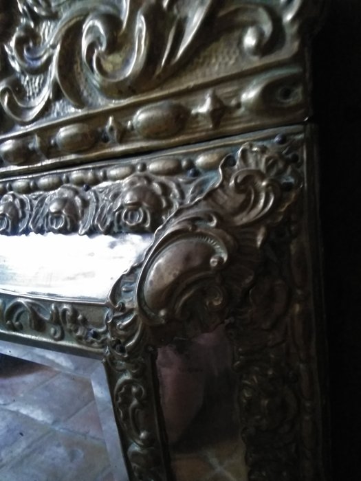 Bloemenscherm spiegel - gesponnen metaal, glas, hout - Tweede helft 19e eeuw