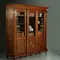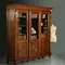 Hollandse eikenhouten 3-deursboekenkast, de deuren voor 2/3 met glas en 1/3 gesloten met een paneel. Get paneel is voorzien van geometrisch lijstwerk ronde een vierkant geprofileerd paneeltje dat op z’n punt staat, Staand op gedraaide bolpoten aan de voorzijde en blokpoten aan de achterzijde. De zijstijlen met een console met druiper aan de bovenzijde en een omgekeerde console aan de voet.