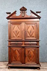 Bourguignon sacristiekast met 4 massief notenhouten luiken