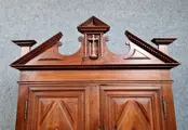Deze kast is een rijke getuigenis van het verleden met zijn nis op de top van de kroonlijst en met daarin een bronzen kruisbeeld (posterieur)