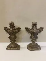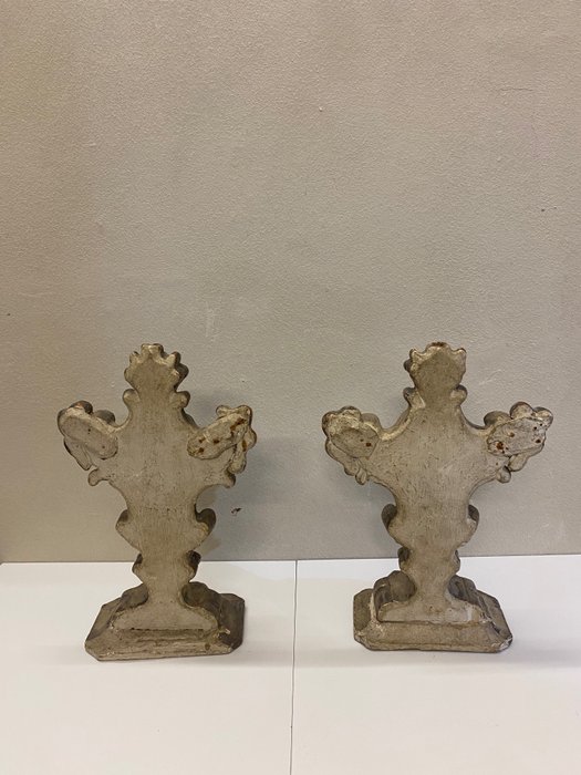 Twee verzilverde houten palmhouders eerste helft 18e eeuw Italie in goede staat met wat ouderdomssporen Afmeting 33x20 cm Verzending via nationale koerier en professionele verpakking