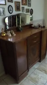 prachtige kast afm. Lengte 140 x Hoogte blad 106 x Diep 50afneembare facet geslepen spiegel prachtig marmeren blad veel handige opbergruimte deurtje ingelegd hout doe een redelijk bod en hij is voor u