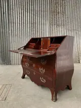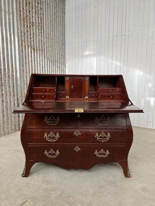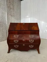 Oorspronkelijk messing beslag op de laden, klep en deurtje. Slot en sleutel werkend.