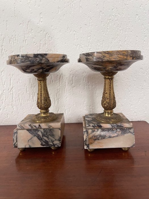 Paar zeer fraaie cassoletten in marmer met gedetailleerd uitgewerkt, bronzen montuur.