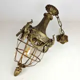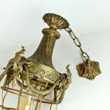 19th century bronze ceiling chandelier decorated with ram's heads.