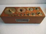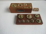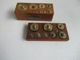 a) Compleetbloklang18 cm , messing Laboratorium gewichten metmooie patina.