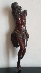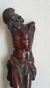 Houten sculptuur van de gekruisigde Christus gemaakt door een Vlaamse kunstenaar uit de zeventiende eeuw.