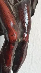 Dit beeldhouwwerk toont de iconografie van de "Christus mortus", of Jezus die nog steeds dood gekruisigd is.