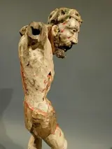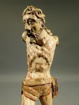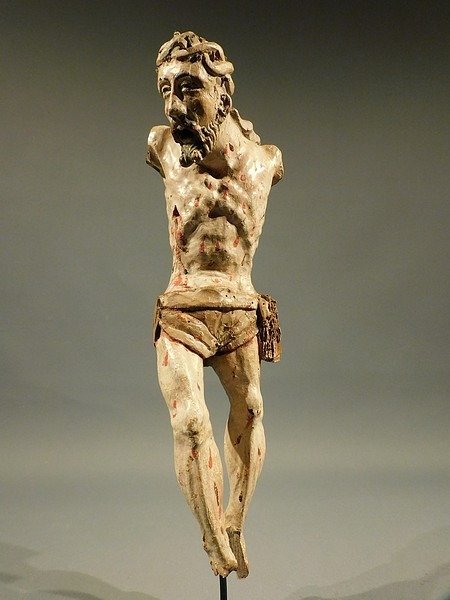 Fijn gesculpteerde figuur met mooie details en originele polychromie.