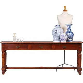 Doorleefde lange sidetable met 3 laden op gedraaide poten
