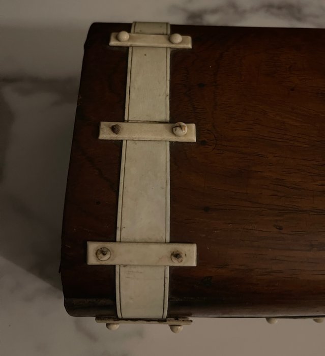 Prachtig stuk met prachtig generfd fineer en bot/bot applicatie (beslag) op de doos!!