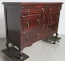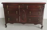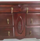 De afmetingen van dit mahonie gehoute meubel zijn: hoogte 94cm, breedte 137,5cm en diepte 49cm. Het is in goede staat met gebruikssporen op het blad zoals afgebeeld.