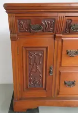 Dit dressoir heeft fraai floraal snijwerk aan de voorzijde.