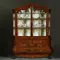 Dubbelgebogen Porcelein kabinet in notenwortel met citroenhout beschilderd interieur ca 1750