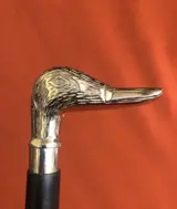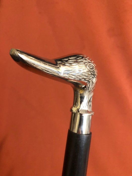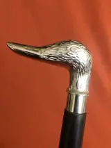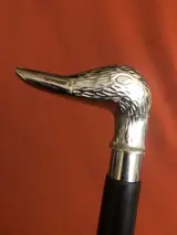 Een jacht-, zelfverdedigings-, wandelstok voor eenden. Handvat in de vorm van een eendenkop, in verzilverd messing. Een zware en overweldigende wandelstok. Houten wandelstok afneembaar in twee delen (gemakkelijk mee te nemen). Perfecte staat. Hoogte: 94cm.