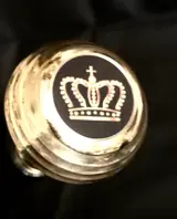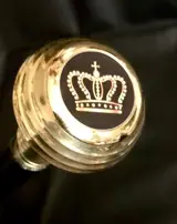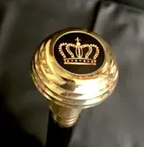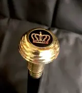 Een koninklijke, ceremoniële, wandelstok. Handvat uitgevoerd als vergulde knop met in de top de Britse koninklijke kroon, uitgevoerd in verguld messing. Zwarte houten stok. Perfecte staat, lengte: 94 cm.