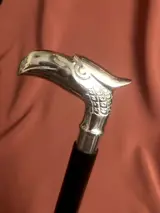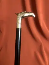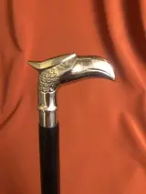 Een, zelfverdediging, ongebruikelijke wandelstok. Handvat ontworpen als een koninklijke adelaarskop. De zwarte houten stok, in twee delen afneembaar, gemakkelijk mee te nemen. Uitstekende staat. Lengte: 94cm.