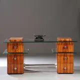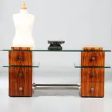Een uniek bureau met glazen werkblad laat Art Deco ca 1950 met 6 laden