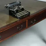 Ruime eenvoudige werktafel in mahonie met een chique groen ingelegd blad...