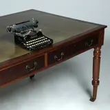 Ruime eenvoudige werktafel in mahonie met een chique groen ingelegd blad...