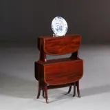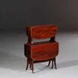 Fraai gaaf tafeltje met zeer lichte gebruikssporen, in een mooie oude kleur en politoer. Klein butsje aan de rand van het middelste bovenblad.