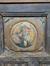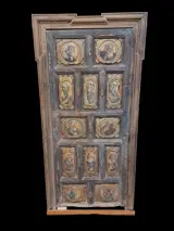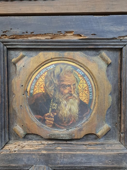 Grote gebeeldhouwde sacristiedeur met voorstelling van 12 apostelen