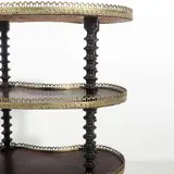 Etagère in mahoniehout, blad uitgesneden met een metalen rooster, poten verbonden door drie planken, decoratie met gedraaide kolommen. Portugees, 19e eeuw.