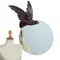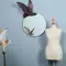 Ronde facet geslepen spiegel op een houten frame waarboven de Feuniks ondeugend over de rand loert.