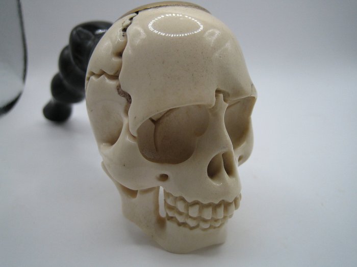 Handgesneden schedel uit hertenhoorn of wrattenzwijn slagtand