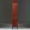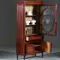 Franse vitrinekast in mahonie met een beglaasde deur met roedeverdeling, daaronder een lade en voorts een naar voren springende onderkast met twee deurtjes, daar achter een schap. Het geheel op 4 kleine gedraaide tapse pootjes met cannelures.