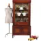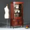 Franse vitrinekast in mahonie met een beglaasde deur met roedeverdeling, daaronder een lade en voorts een naar voren springende onderkast met twee deurtjes, daar achter een schap. Het geheel op 4 kleine gedraaide tapse pootjes met cannelures.