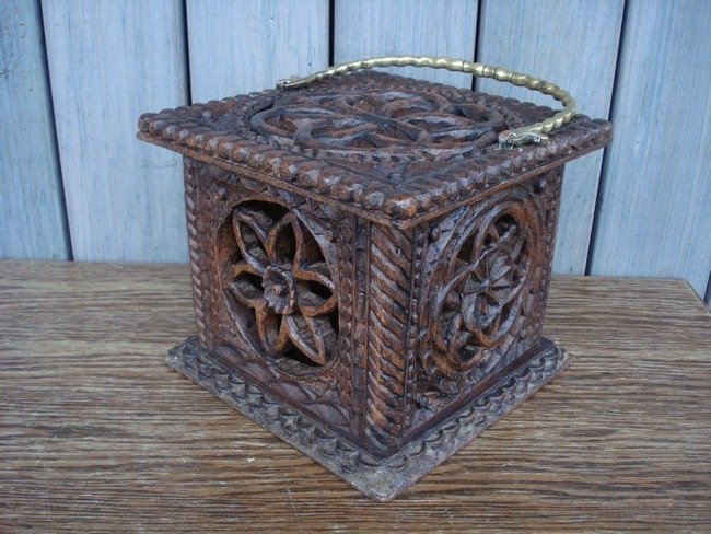 Prachtige eikenhouten gebeeldhouwdekerkstoof.