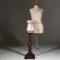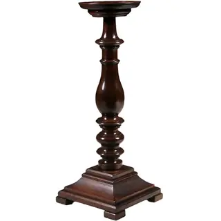 Gedraaide notenhouten zuil met een rond bovenblad met kleine opstaande rand, de vierkante voet met kleine slofpootjes.