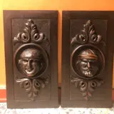 Gegraveerde notenhouten hoge reliëfs (2) - Renaissancestijl - Walnoot - Eind 19e eeuw