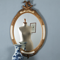 Ovale spiegellijst van kloek formaat met in de kroon de Adelaar die verwijst naar de Evangelist Johannes, en een toorts kruisend met een koker pijlen. De ovale lijst is op vier kwartieren voorzien van een wit vlak met gouden spikkels daartussen een symmetrisch ornament. Op de achterzijde een gegomd etiket van de Gebroeders Koch – Den Haag – Amsterdam. Later ook in Rotterdam.
