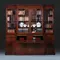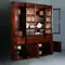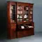 Engelse boekenkast met een zogenaamd breakront, voorzien van 8 deuren, de bovenste 4 met glas, in de onderkast ogenschijnlijk 6 laden, de middelste twee vormen echter het neerklapbare front van een ruim bemeten schrijfbureau. De buitenste laden zijn dubbel uitgevoerd als hoge diepe laden.