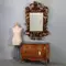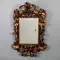 The mirror glass, faceted and probably installed towards the end of the 18th century. The original 17th century glass was rarely bavelled, and almost always very heavily weathered. This mirror glass also clearly shows traces of time, but is quite clear considering its age.