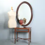 Mooi gaaf en in een zeer fraaie warme kleur, een klein krimpnaadje in het hout, onze restaurateur zal dit nog mooi bijwerken. De spiegel is nog origineel en heeft een mooi helder beeld zonder verkleuring.
