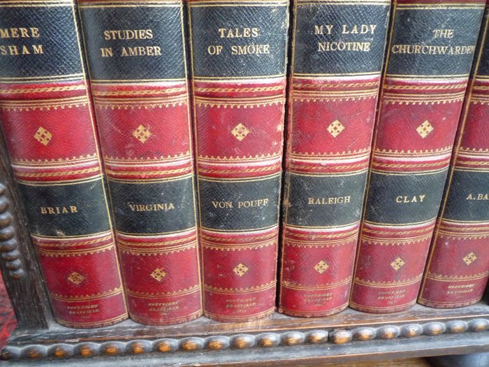 uniek Cabinetje met verborgen knopje in de kraal rand verzilverde asbak massief eiken, leren boek banden gepatenteerd No 8292